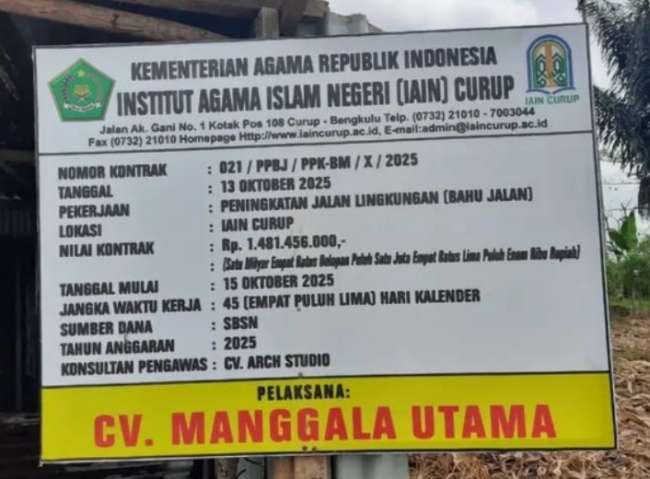 Seperti salah satu contoh Proses pekerjaan Proyek Peningkatan Jalan Lingkungan (Bahu Jalan) Kampus IAIN Curup Bersumber Dana SBSN sebesar Rp 1.481.456.000,- Tahun Anggaran 2025 yang di laksanakan Oleh CV.Manggala Utama.
